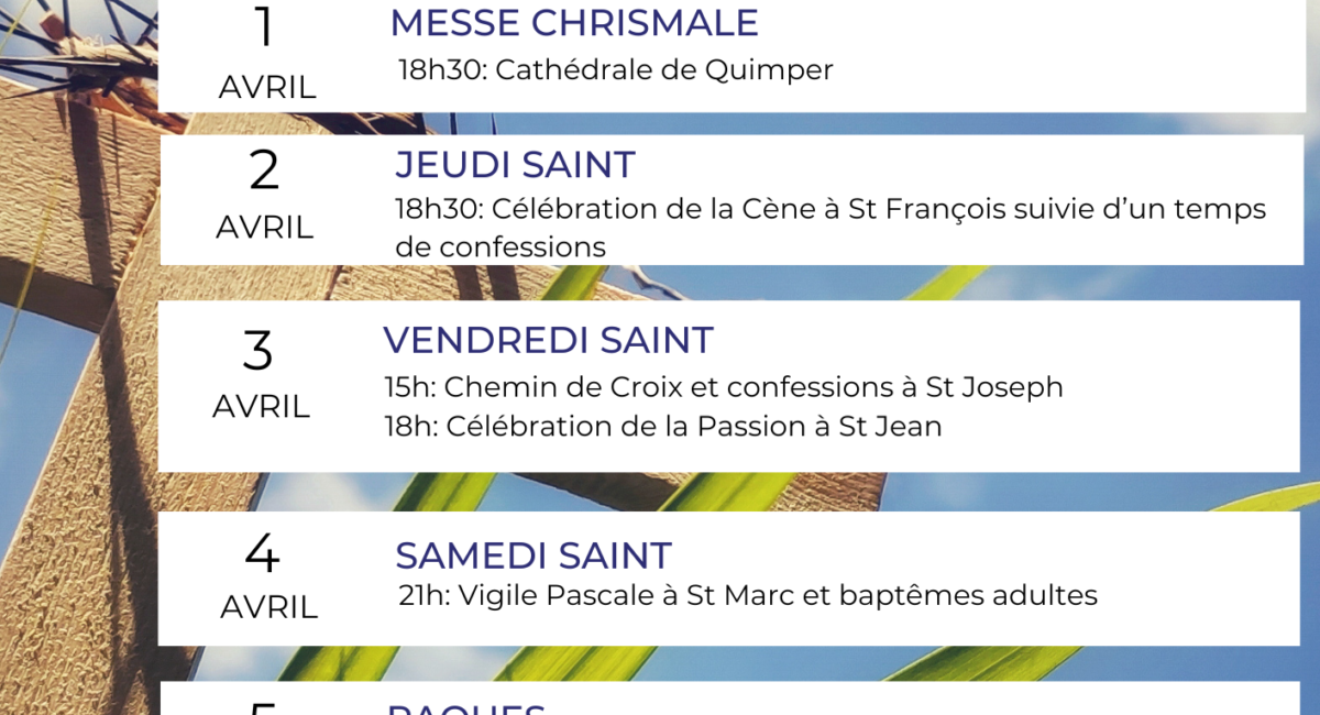 Retrouvez les horaires 2026 de la semaine sainte pour la Paroisse Brest au Levant de Brest.