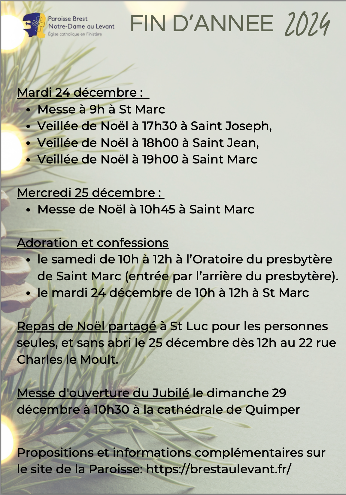 Horaires de messe – fin d’année