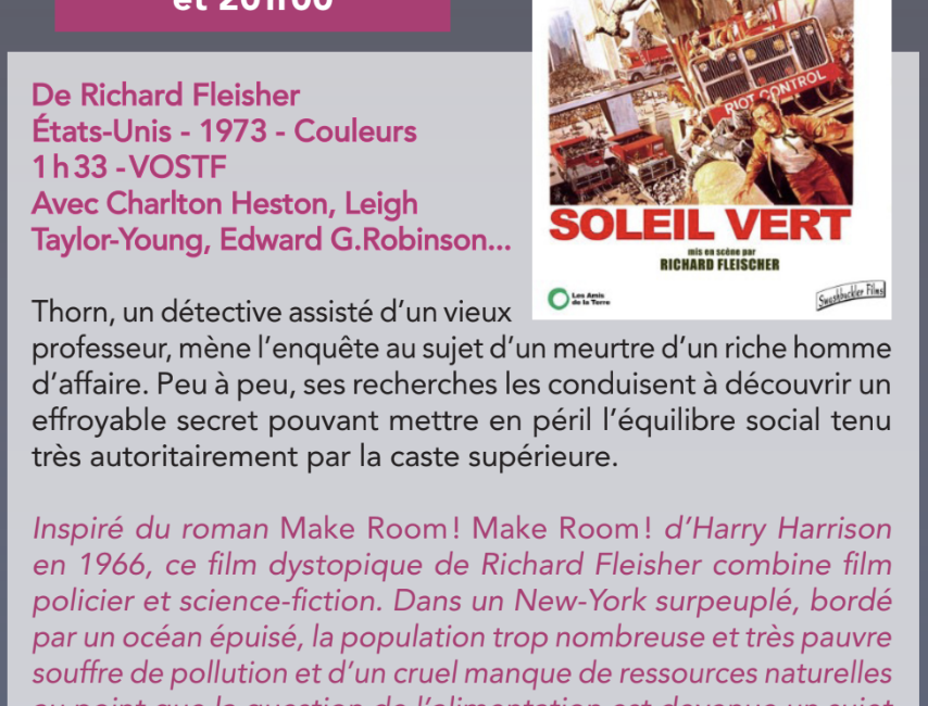 Dans le cycle de films organisé par les paroisses de Brest en partenariat avec le cinéma Les Studios, la 4ème séance aura lieu ce mardi 14 mars. Il s’agit de « Soleil vert », [...]