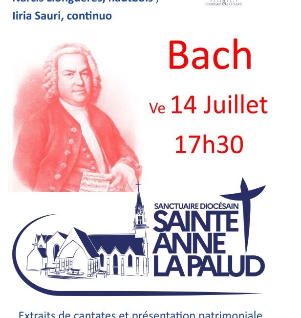 Extraits de cantates Bach et présentation patrimoniale le vendredi 14 Juillet 2023 à 17h30 au Sanctuaire diocésain Sainte-Anne-la-Palud.