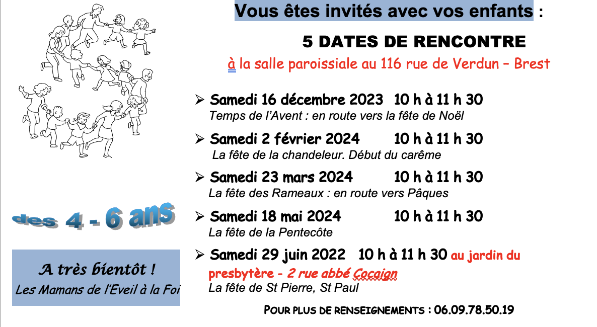 L’équipe d’éveil à la foi a la joie de vous accueillir les enfants de 4 à 6 ans le samedi 16 décembre de 10h à 11h30 au 116 rue de [...]