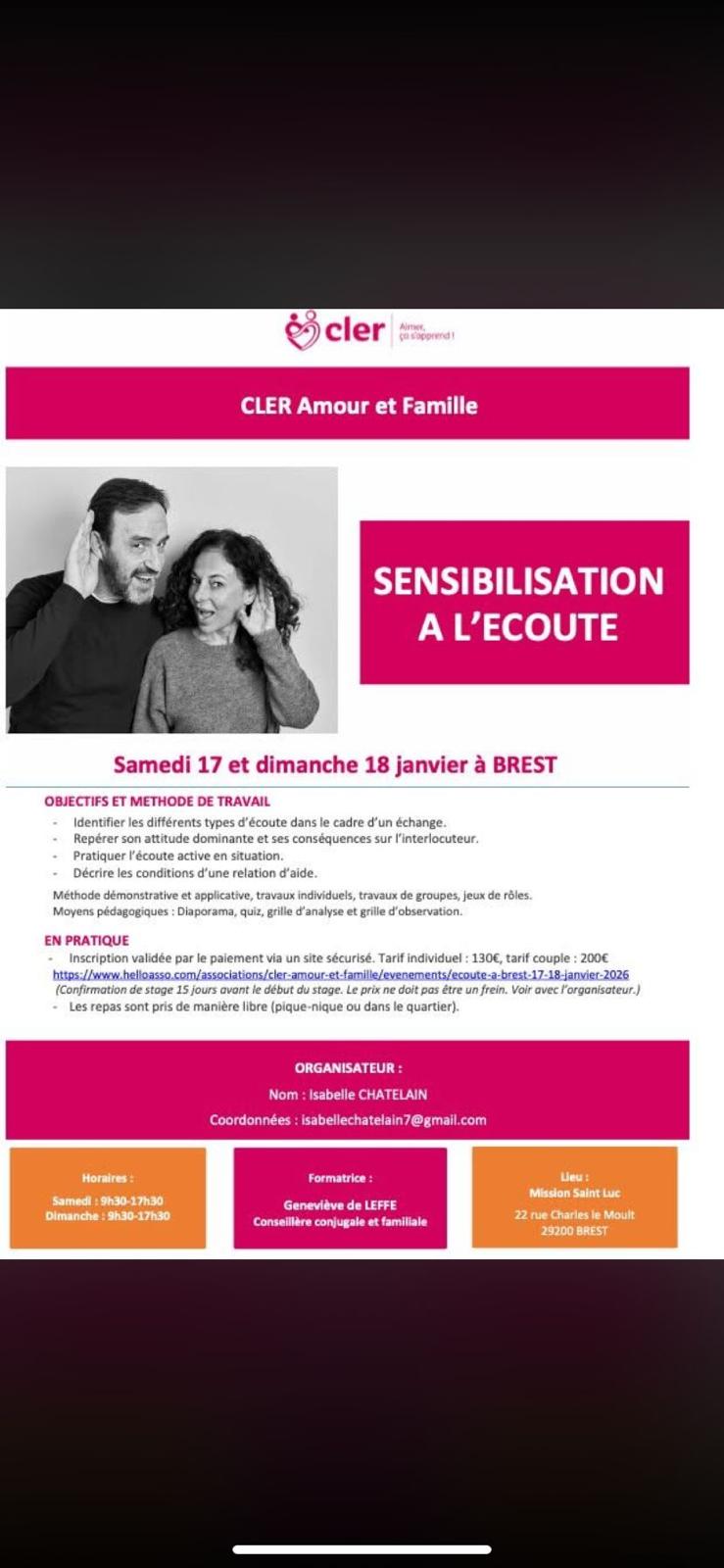 Sensibilisation à l’écoute (Formation du CLER)