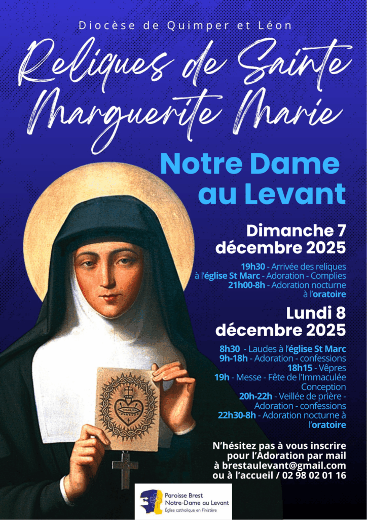 C’est avec une grande joie que notre diocèse accueillera, du 21 novembre au 14 décembre, les reliques de sainte Marguerite-Marie Alacoque, apôtre du Cœur de Jésus. Cette venue exceptionnelle est une occasion de grâce et de prière pour tous les fidèles. Durant cette période, les reliques se déplaceront dans plusieurs paroisses de notre diocèse, offrant à chacun la possibilité de venir se recueillir, confier ses intentions et raviver sa foi à l’école du Cœur de Jésus, si cher à sainte Marguerite-Marie. Que ce temps de pèlerinage soit pour notre communauté un moment de renouveau spirituel, de paix et d’unité dans l’amour du Christ.