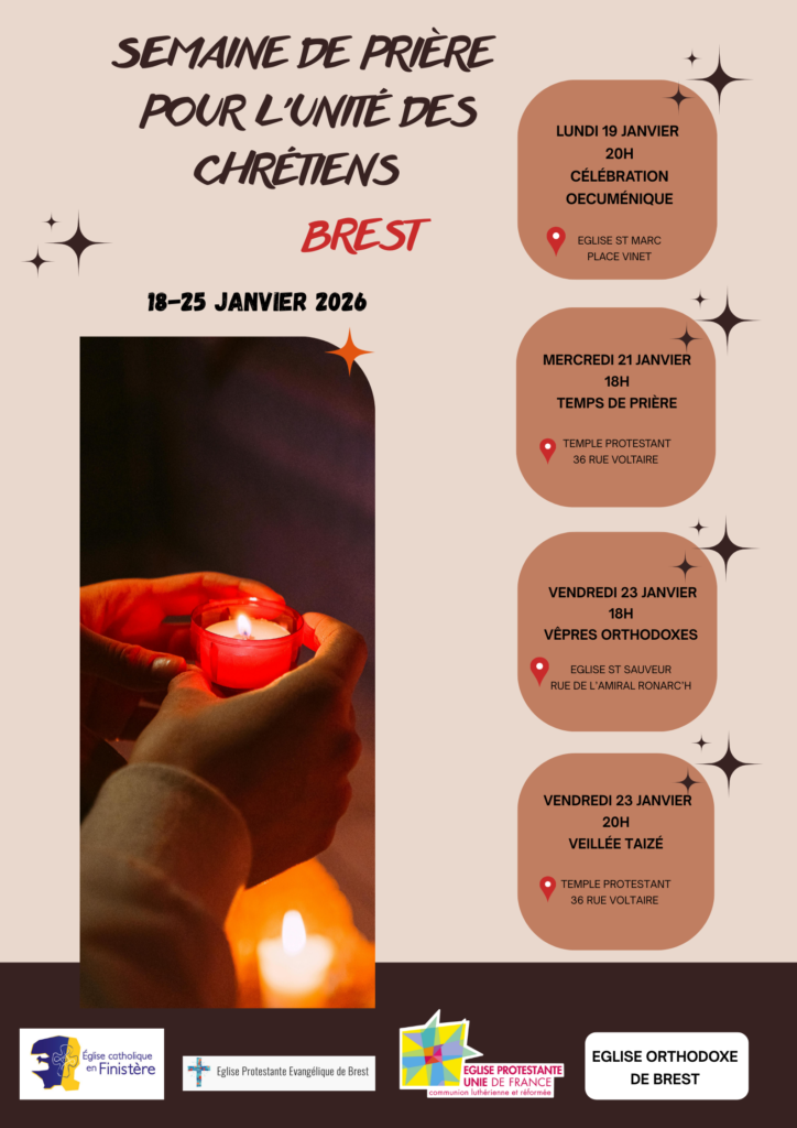 4 temps de prière dans nos églises et temple chrétiens à Brest la semaine du 18 au 25 janvier.